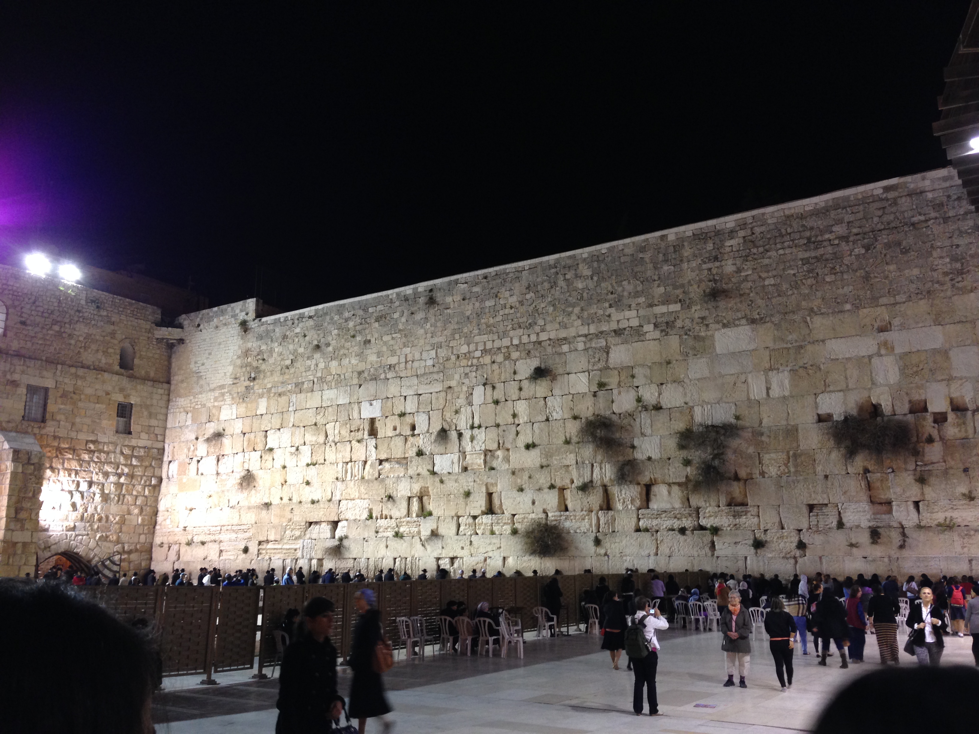 Y finalmente el Muro de las Lamentaciones, me quedé realmente impresionada al conocerlo y ver a los judios rezar. Uno de los muros del que fué el templo de Herodes, es el lugar sagrado más importante para los ellos. Entre las piedras que componen este muro, los fieles ponen pequeños papeles con sus peticiones. Yo dejé la mia. En dicho Muro, en el que hombres y mujeres están separados, los judios oran para que Dios vuelva a Israel, piden por el regreso de los exiliados judíos y por la venida del Mesías judío. Lo visitamos tanto de día como de noche, y en ambos casos mereció la pena.