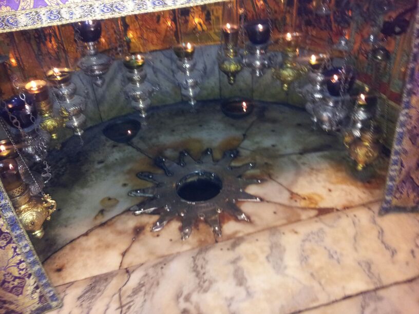 Esta segunda foto por su emotividad. En la cripta de la basílica de la Natividad de Belén se encuentra el lugar tradicional donde la Virgen María dio a luz a Jesús. Una estrella de plata marca el lugar. Cientos de miles de peregrinos visitan este lugar y besan la estrella. Desde la basílica se transmite la Misa del Gallo por televisión a todo el mundo.